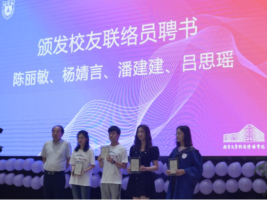 毕业后,同学们都有了共同的新身份——南大新传校友。为进一步做好校友联络工作,建立校友间友好联络。学院从2021届本科生、研究生毕业生中,选聘了四位校友联络员,院党委书记刘源为2021届校友联络员陈丽敏、杨婧言、潘建建、吕思瑶颁发聘书。