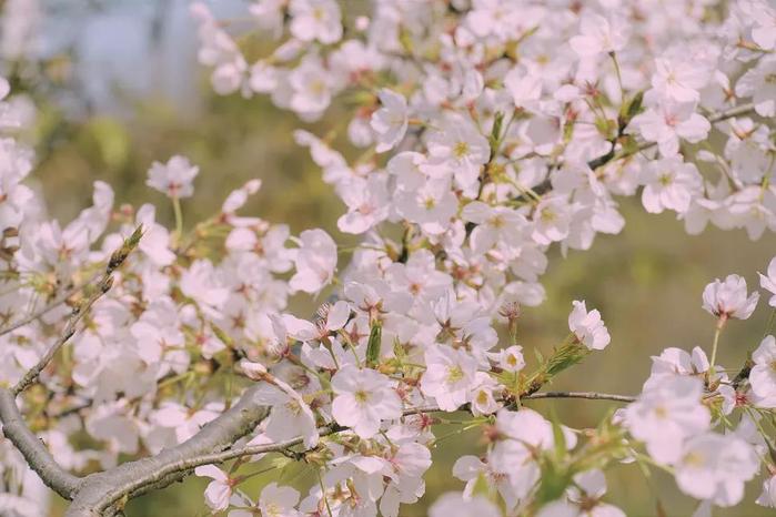 彼时阳光灿烂,万物生长,抬眼望那些在微风中颤颤的半透明浅粉色花瓣,心里总会弥散开一种脆弱的欢喜。穿行其间,总感觉自己同时也穿梭在无数个时空里、那些人共通的思念与惆怅里,神明把风光交给霁月,也把樱花交给春天。