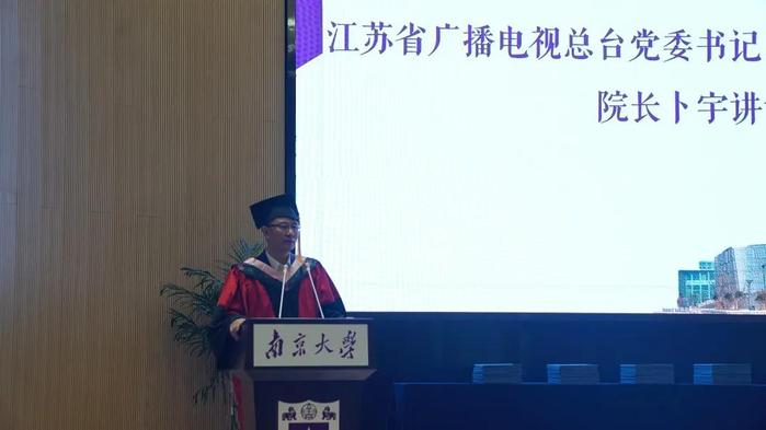 江苏省广播电视总台党委书记、台长、集团董事长,院长卜宇教授讲话,鼓励同学们在未来的人生道路中努力拼搏,奋勇前行。