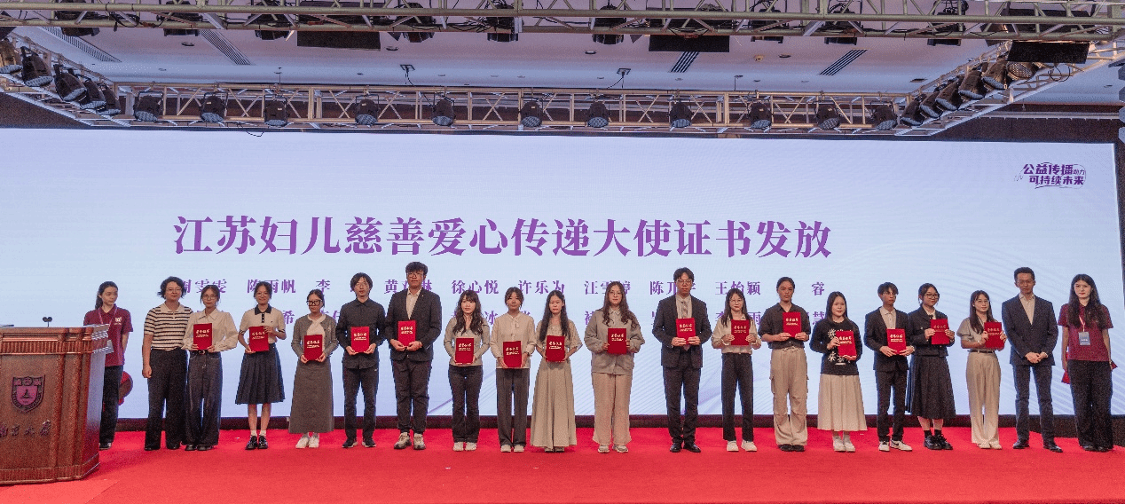 、南京航空航天大学、苏州大学、中国药科大学、南京中医药大学等高校长期热心公益实践并积极推进公益传播的青年骨干获得“江苏妇儿慈善爱心传递大使”证书。