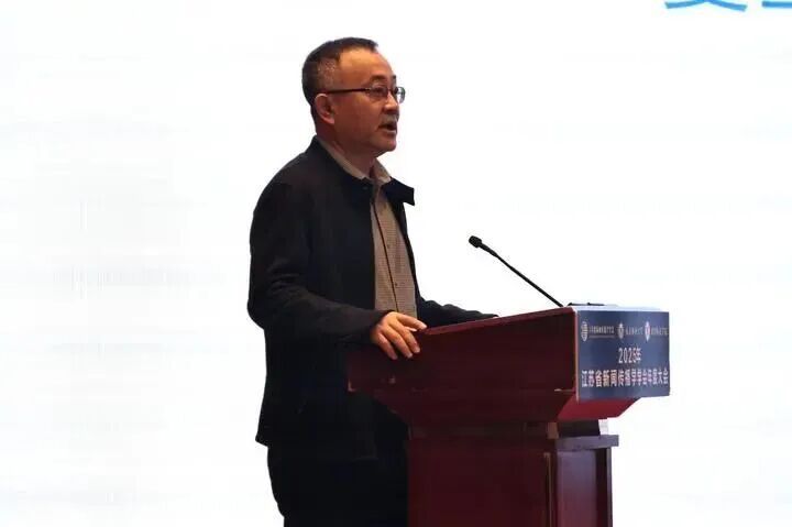 开幕式环节,江苏省新闻传播学学会会长张红军发表致辞。他指出,目前,世界百年变局加速演进,传播领域正经历深刻变革:一方面,生成式人工智能等新技术正深刻重塑全球传播形态与舆论生态;另一方面,区域传播生态呈现显著差异化发展特征。因此,业界同行更需要加强交流、互鉴和变革,以“交流”打破学科壁垒与区域界限、以“互鉴”促进学界与业界协同、以“变革”锚定核心目标。
