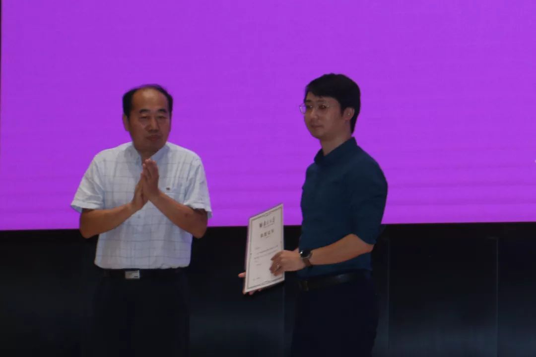 院党委刘源书记为“优秀博士论文”获得者吴志远颁发证书