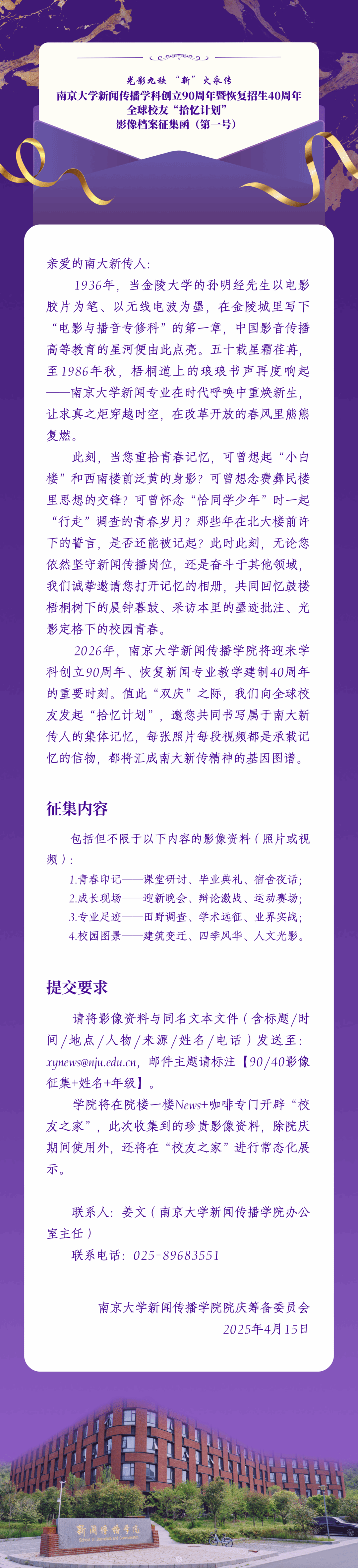 光影九秩,“新”火永传丨色情网站 新闻传播学科创立90周年暨恢复招生40周年全球校友“拾忆计划”影像档案征集函(第一号)