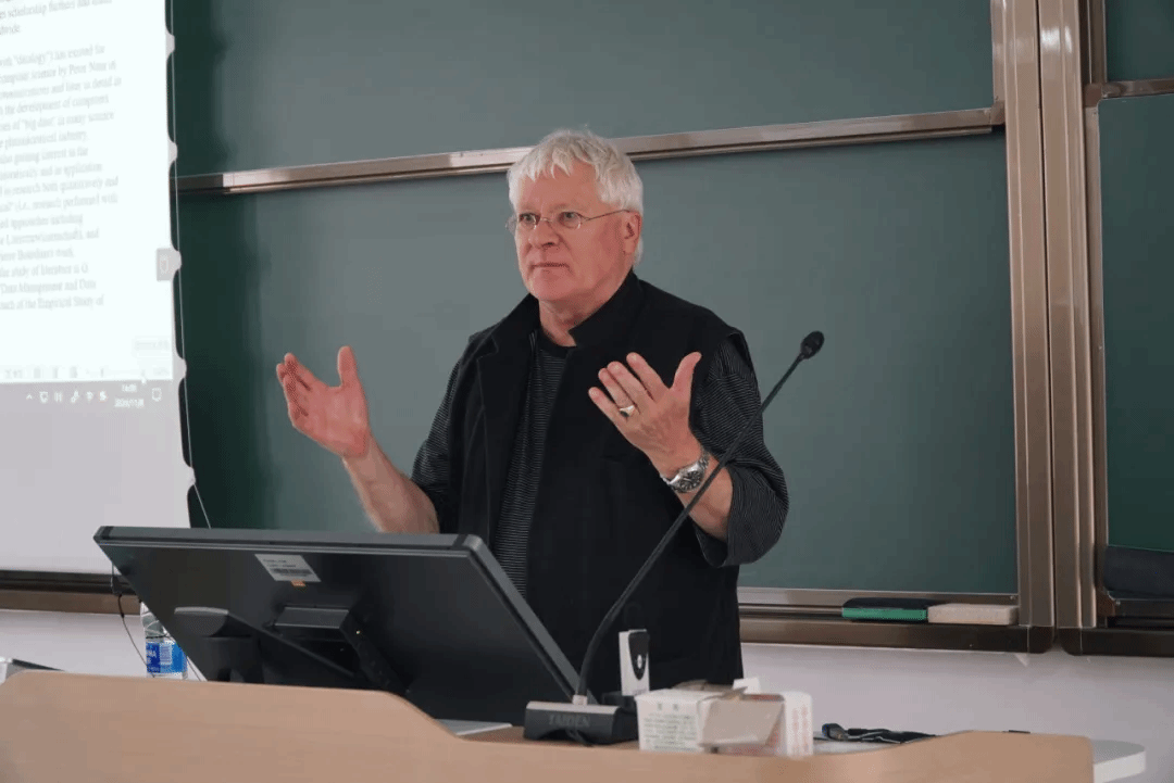 托托西教授从在场学生的学科背景新闻传播学说起。新闻学是一个特殊的学科,兼有社会科学与人文科学的双重特征,托托西教授借此引出了本次讲座的主题:在文学研究中使用电子数据的历史背景以及当前的学术和实践景观。