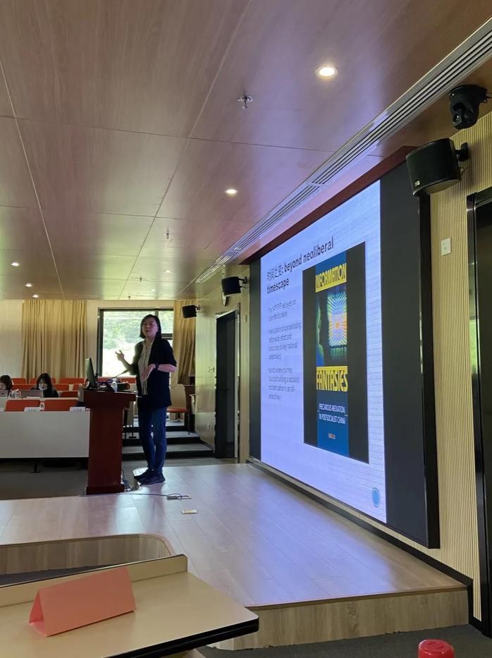 金萍华副教授点评。参会者们集中于微信、短视频等新媒介技术对于代际关系、人际关系和自我呈现等诸多面向产生的影响,进行了论文提报。金萍华副教授对论文进行了详尽的点评,她指出日后的研究不应局限于自己的一方天地,希望可以看到更多宽广的选题。刘于思副教授随后从自己的学习和治学经历出发,就量化与质化方法的联系与区别、论文写作的细节等方面做出了精彩的分析,并希望在座的各位可以找到适合自己的写作方式,对学术写作方式勤加反思。