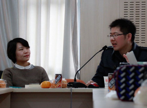 新闻学院硕士生导师朱丽丽老师主持本次讲座,并向陈世华副教授赠送了南大新传“博士之家学术午餐会”文集。