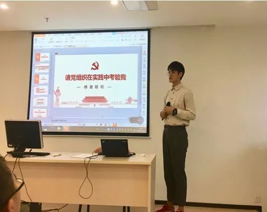 首先,预备党员进行自我陈述,向党组织汇报自己预备期一年来学习、生活情况。博士生党支部张婧妍同志重新回顾自己的入党初心,指出身边人的言传身教、耳濡目染和现实社会生活中中国共产党对于国家发展的巨大贡献对自己的思想产生了很大影响,明确自身的初心使命。