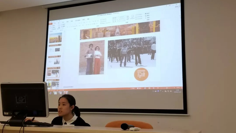 孙秋同志首先上台发言,她们党小组从改革开放40周年中“衣食住行”四个方面分别展开了分享。无论是百姓生活的穿衣打扮还是居住场所,还是百姓的饮食习惯和出行方式,在改革开放的这40年中都发生了十分巨大的变化。人们的追求从最开始的吃饱穿暖,到现在的高品质消费,无疑不是体现出改革开放这40周年的期间内,祖国在向着一个繁荣富强的方向发展。随后孙秋小组还和同志们分享了一部5分钟左右的,呈现改革开放四十周年变化的沙画展示。