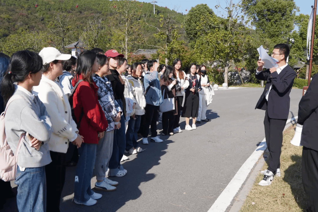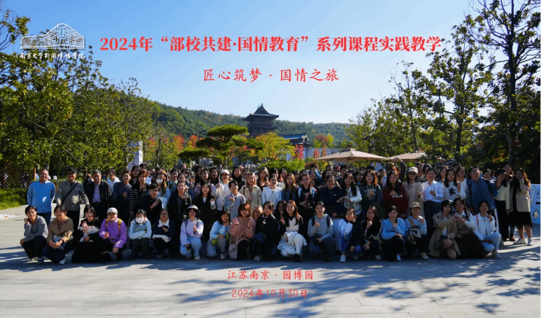 “部校共建·国情教育”系列课程全体师生前往江苏园博园开展实践教学活动。此次实践课程以线下实地参访的形式开展,在中建八局文旅博览投资发展有限公司同志的带领与讲解下,同学们沉浸式领略江苏园林的工艺之美,体悟蕴藏于一砖一瓦、一草一木间的工匠精神,探索中华优秀传统文化在园林建筑中的生动呈现和创新转化。