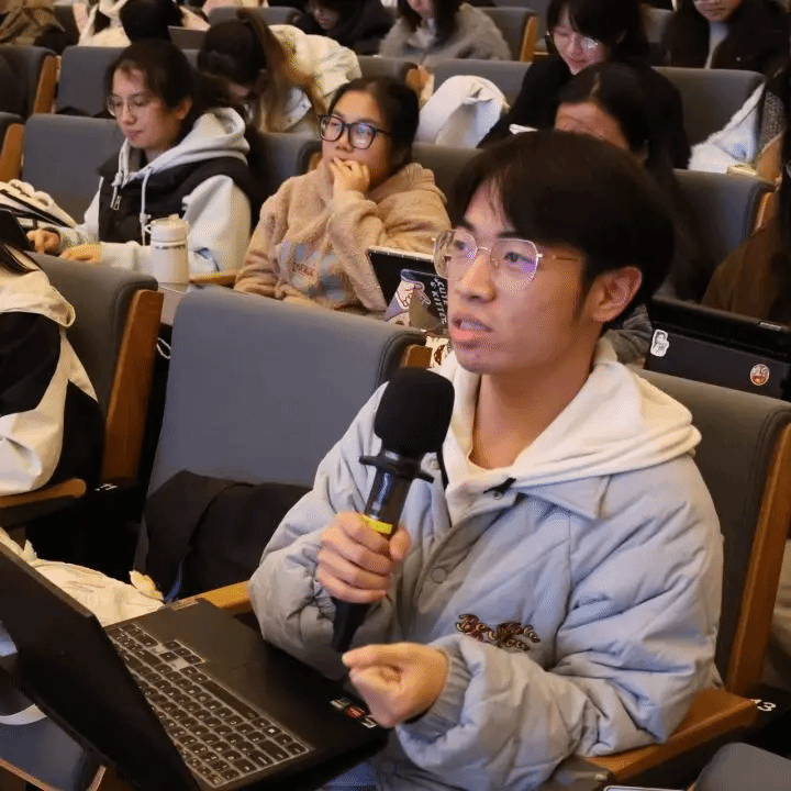 在现场互动环节,同学们围绕如何寻找选题、成为体育记者所需具备的能力等话题踊跃提问,孙庆一一予以细致的解答。