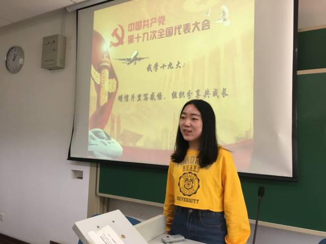 贡宏云将目光聚焦于青年党员,她提到,“十九大报告主题中有两个词,一个是不忘初心,一个是牢记使命。初心,在我看来就是自己在第一次向党组织递交入党申请时想要加入这个光荣的先进的集体并为国家和人民奉献的初心。使命,对我而言,不仅是党员的使命,不仅仅是作为积极分子应该极力看齐学习的,更是我们当代青年的使命。习总书记在报告中指出:“青年兴则国家兴,青年强则国家强。青年一代有理想、有本领、有担当,国家就有前途,民族就有希望。”我们作为新时代的青年,应该担当起自己的历史使命,珍惜前人为我们创造的良好生活环境,不断努力奋斗,认真学习技能本领,为中华民族的伟大复兴贡献自己的力量!”