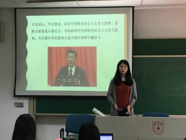 在明信片分享活动进入高潮之际,张雅静、王雪莹和贡宏云更走上讲台,分享自己对十九大的一点学习心得。