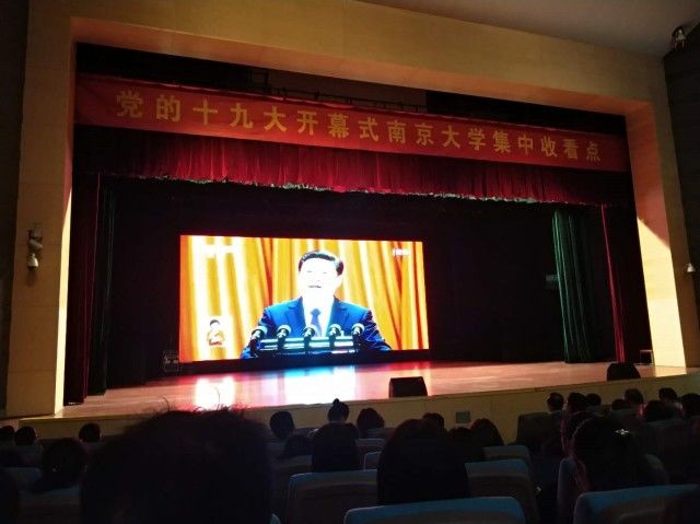 北京时间2017年10月18日上午9时,中国共产党第十九次全国代表大会在北京人民大会堂召开。新传院部分组织学生党员分别前往我校仙林校区恩玲剧场和鼓楼大礼堂,与各院系师生一起观看直播,共同聆听习近平总书记代表十八届中央委员会所作的报告。在雄壮的国歌声中,全体学生党员心潮澎湃、激动难抑。