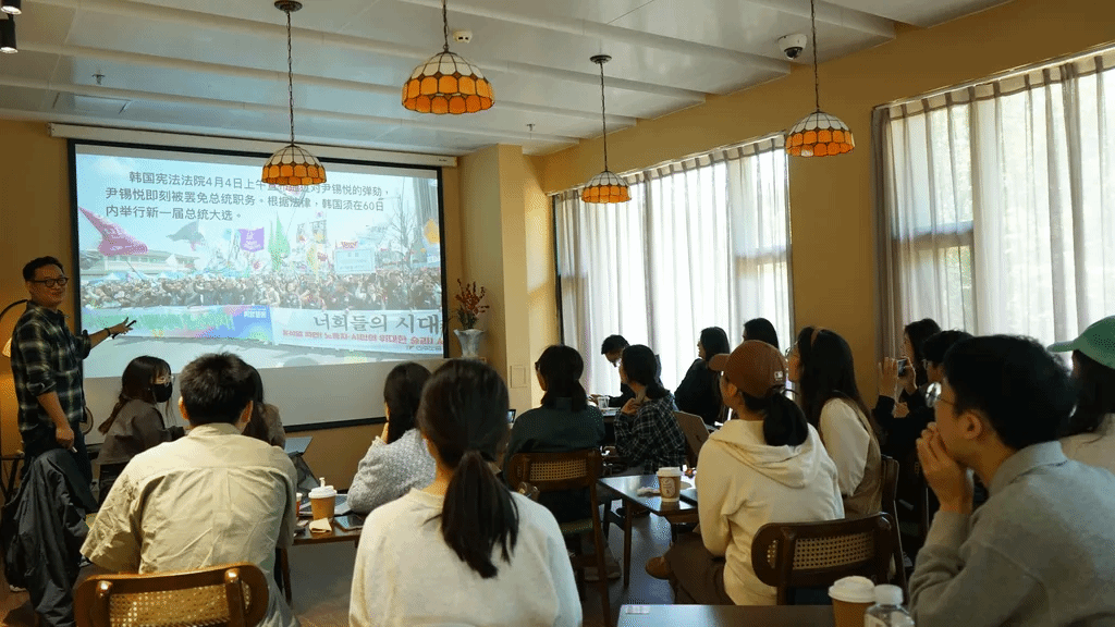从斯里兰卡、瑙鲁、缅甸到韩国,作为一名记者,王申学长的关怀在哪里,他的镜头和脚步就在哪里。王申学长分享了自己在印尼地震及海啸、斯里兰卡连环爆炸案、瑙鲁和中国复交事件、缅甸地震、韩国总统弹劾案中的工作经历,他以这些事件中的拍摄工作为例,向同学们讲述了新闻摄影的经验和技巧。他强调照片中的“情感”力量,并着重分析了新闻摄影中的第一落点、第二落点、第三落点。
