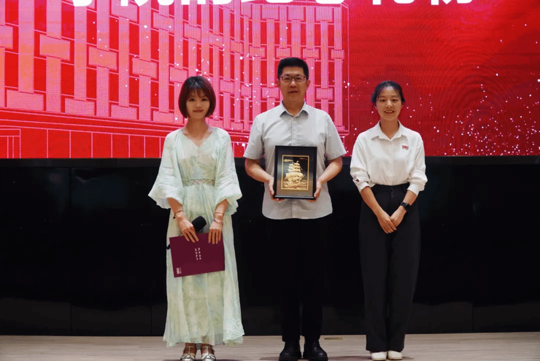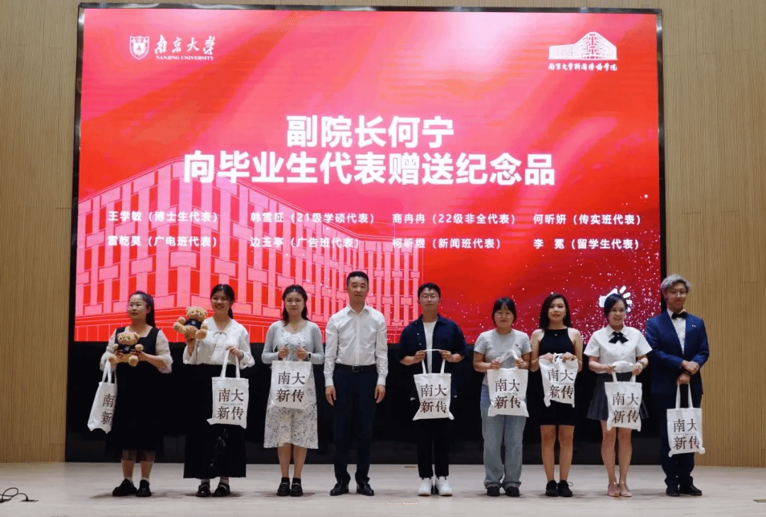 副院长,江苏省广播电视总台副台长、集团副总经理何宁向毕业生代表赠送了这份学院专属定制纪念品。