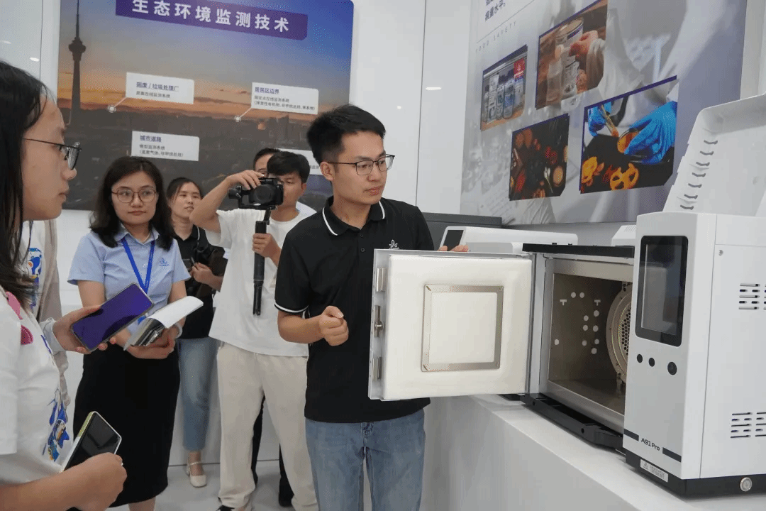 磐诺仪器产品经理郑加祥展示仪器的使用