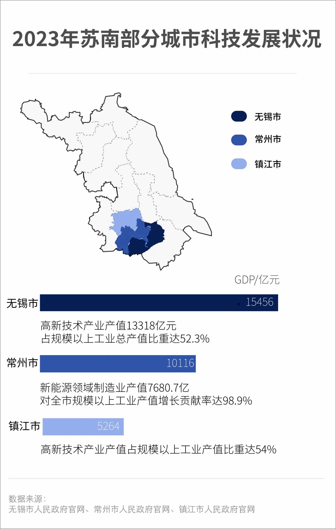 苏南地区是江苏省经济最发达、城镇化水平最高、对外开放程度最高的板块,是江苏经济的领头羊。无锡、常州、镇江三个城市的经济发展,在2023年都交出了亮眼的成绩单,高新技术企业集群的建设和发展为这片“热土”再添新动能。