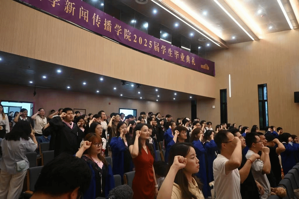 校歌里的“知”“仁”“勇”,如鼎之三足,是立身处世的根本,凝聚着南大123年的精神基因。“知”需洞明世事,如范长江“大处着眼”的视野与终身学习的态度,在AI时代既要善用技术,亦需“丈量大地的脚板”;“仁”当立己达人,超越“小确幸”而牢记“仁者爱人、民胞物与、修齐治平”,以传媒人“手无寸铁兵百万”的笔锋服务社会;“勇”贵弘毅坚卓,要做社会中的瞭望者、推动者、守卫者。“大哉一诚天下动”,最后,葛院长勉励同学们以“诚”为本,踏歌而行、筑梦远方。