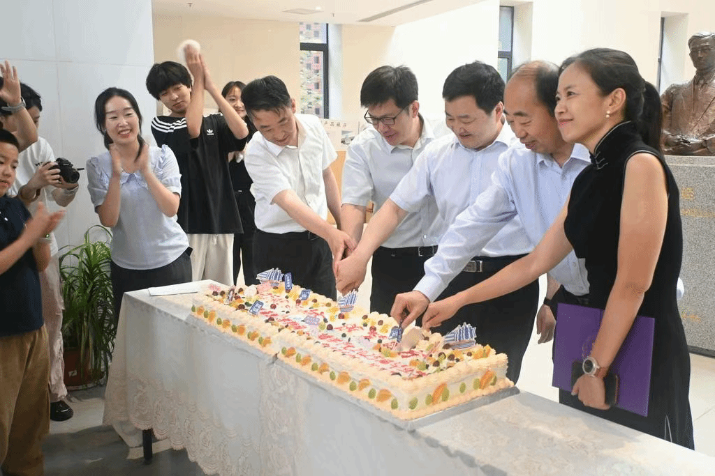 典礼结束,学院领导老师们和毕业生及家长们在学院中庭分享毕业蛋糕,氛围热烈。
