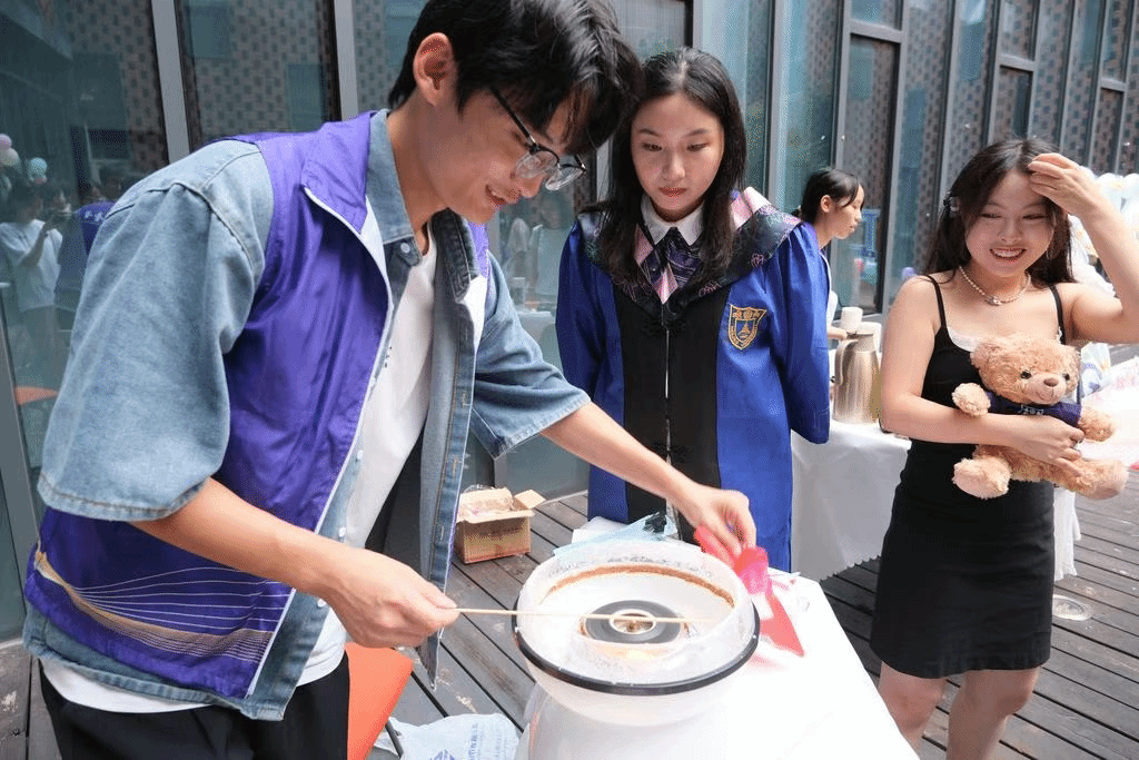 17:00,夏日毕业派对在紫金楼中庭花园内举办。五大精心布置的主题区为同学们提供了丰富多元的活动与服务。在游玩体验、拍照打卡、品尝美食后,大家陆续入座。现场师生与家长用充满活力的舞蹈和动人的歌声点燃全场热情,一首首饱含深情厚谊的歌曲,诉说着不舍与祝愿。毕业派对在青春洋溢的欢歌笑语中圆满落幕,为此次毕业活动留下悠扬余韵。