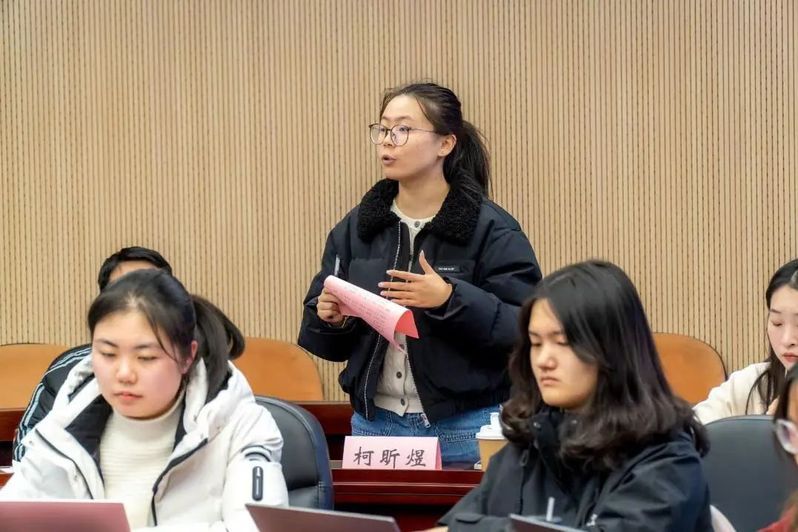 学术科创上,大二学生代表提出本科同学“书怎么读”“论文怎么写”的问题和增设推荐书单、建立本科读书会的建议。教师代表在讨论中介绍了学院现行方案,强调了学生自主学习和主动表达的重要性。