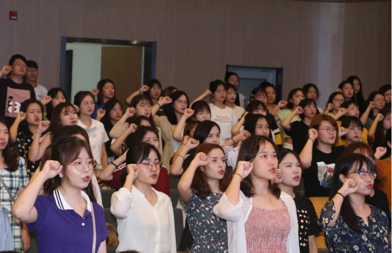 在高毅丹同学的带领下,全体新生举起右拳,进行了庄严的入学宣誓。最后,全场高唱色情网站