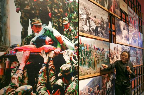 玉树抗震救灾纪念馆由地震遗址、纪念馆主体及感恩广场三部分组成,通过对震后遗址的保存和抗震救灾资料的收集展览,向每一位到访的人讲述七年前那场灾难和灾难后续的故事。在灾后重建过程中,由于高原上的高强度工作,有117人倒在了工作岗位上,他们的名字静静地陈列在馆内的牺牲人员名单上,供人们缅怀。