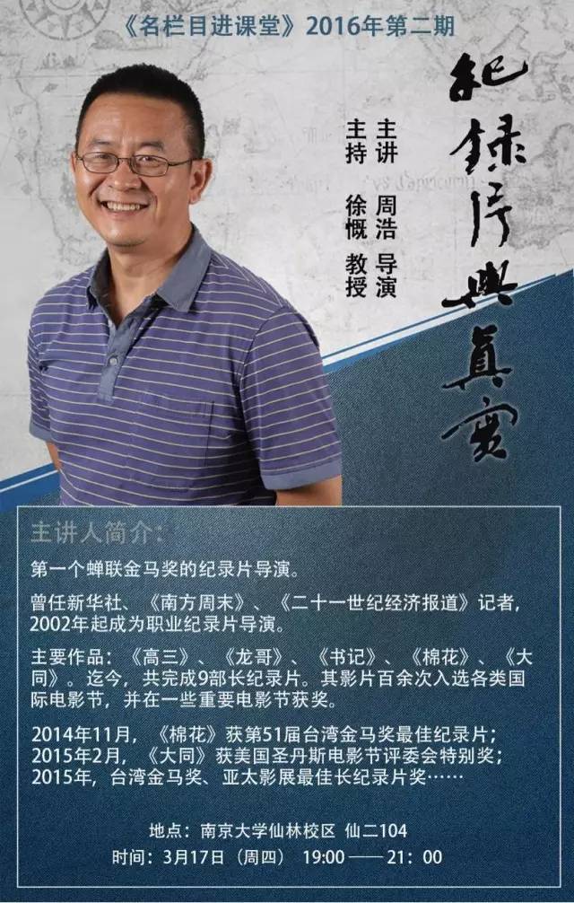 在成为校红之前,先来一次精神上的洗礼。文化节系列讲座之“纪录片与真爱”带你了解纪录片拍摄过程的艰辛与乐趣,带你体会拍摄者对纪录片的执着追求,带你见证一场撼动人心的“真爱”。主讲嘉宾周浩,第一个蝉联金马奖的纪录片导演,他曾任新华社、《南方周末》、《二十一世纪的经济报道》记者,2002年起成为职业纪录片导演。代表作《高三》、《龙哥》、《书记》、《棉花》、《大同》等。迄今,共完成9部长纪录片。其中《棉花》获第51届台湾金马奖最佳纪录片;《大同》获美国圣丹斯电影节评委会特别奖……我们还邀请到了色情网站