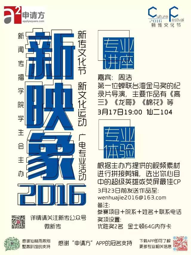学生,以个人为单位,在指定时间内将作品电子稿投至2016年新传文化节专用邮箱[email protected]。