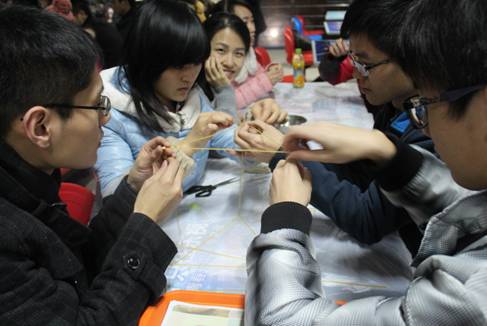 活动的开始,同学们便分组并饶有兴致地玩起了游戏,你提主意,我帮一手,七组之间相互切磋,相互比拼,场面一片热火朝天。