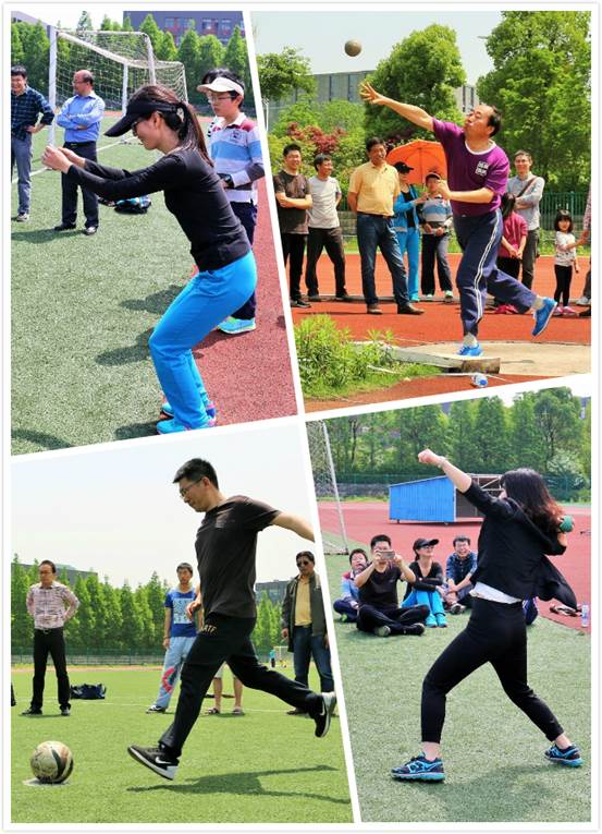 袋鼠跳要求老师、学生相互配合,比赛开始后,同学们奋力向前,老师也不甘落后,年纪虽大,但比赛热情不减,各显身手。教工立定跳远项目中,徐志萍和张静老师分获女子组一二名,男老师方面,刘源书记深藏不露,2.18米的成绩是当之无愧的第一,蒋恩铭书记紧随其后。掷沙包在立定跳远随后进行,女子组方面辅导员志萍姐展现出了过人的实力,33.7米的成绩轻松拿到第一,而男子组方面,张红军副院长的成绩是惊人的58.1米,甩开了第二名好一段距离。男子铅球的比赛进行的十分胶着,各个老师间的成绩差距并不大,最终冯少明老师凭借第二投的爆发,一个9.70米,夺得冠军! 临近中午,老师们与学生开始了一场射门大赛。老师们精准的射门让同学们刮目相看。