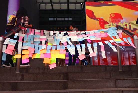 为送别即将离开学校的大四学生,借“五·二○”校庆之际,于5月19日举办了毕业季展台祝福征集活动。在活动中,学弟学妹送上祝福,毕业生们留下寄语。整个活动洋溢着浓浓的新传情意,并获得了良好反响与广泛关注。