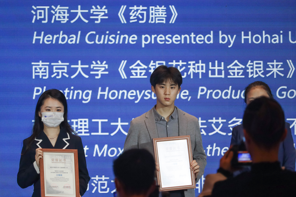 《金银花种出金银来》、南京理工大学《古法艾灸:你不知道的中医疗虚秘方》、南京师范大学《咖啡遇上茶》、南京中医药大学《金线莲2.0》获三等奖。获奖作品在江苏中医药国际交流大会上进行了颁奖,并在新华社海外平台上线首发,充分展示了在现代语境下青年群体对中医药的理解与认知,助推中医药文化国际交流推广。
