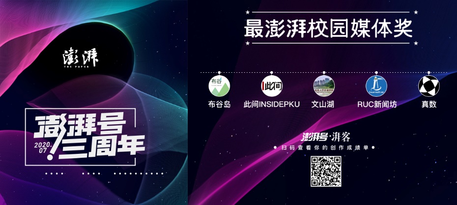 可视化团队“真数”获得“最澎湃校园媒体奖”。该项评比综合考察两年来账号在内容质量、影响力、美誉度、活跃度、互动性等八个维度的表现。