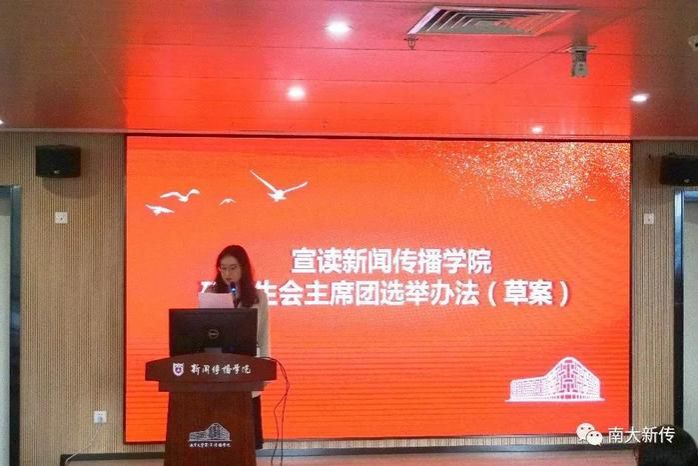 研究生会主席团选举办法》,以及总监票人、监票人名单,并宣读了候选人名单、记票人名单。候选人姚墨汝、叶瑞恒、周钰、李玉端依次进行竞选演讲。