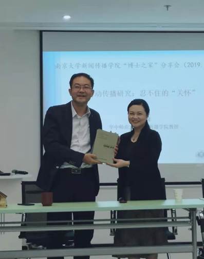 胡翼青老师向黄月琴老师赠送博士之家论文集