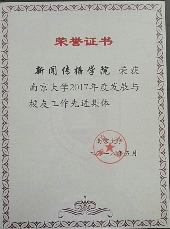 色情网站 荣获色情网站 2017年度“发展与校友工作先进集体”荣誉证书,杜骏飞院长荣获色情网站 2017年度“发展与校友工作先进个人”称号。